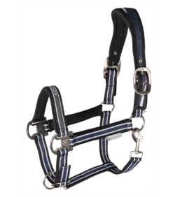 - Quality halter with soft padding on neck and nose area as well as on the cheekpieces. Anatomical headpiece for pleasant wearer comfort. Multiple adjustments possible on chin strap and headpiece. With silver-coloured metal fittings.