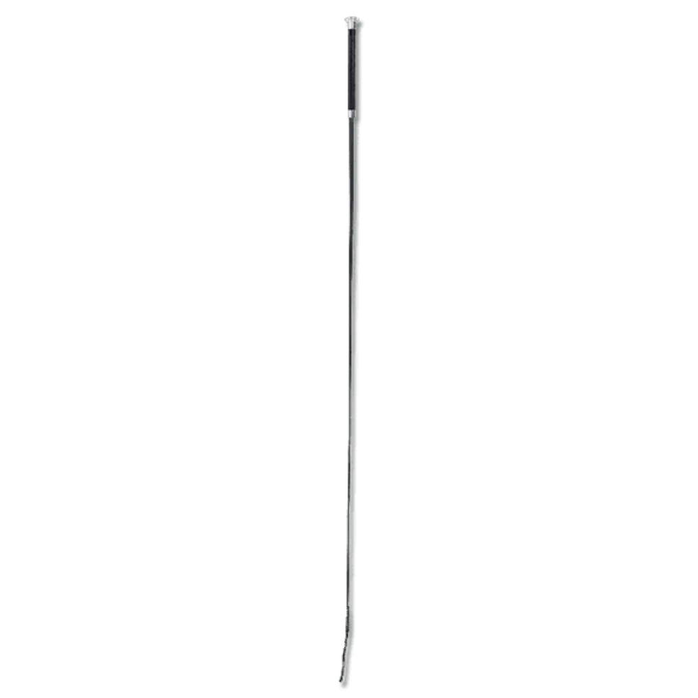 High quality and extremly lightweight jumping whip with leather flap. This jumping whip impresses through the extremly light weight (ca. 39g.) and high quality materials. Carbon & fiberglass fibres.