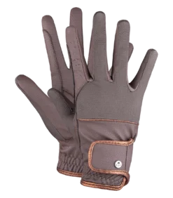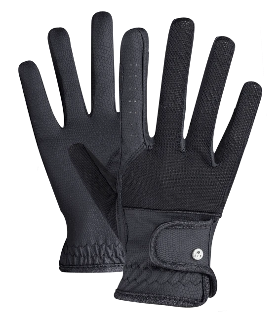 Elegant riding gloves in a material mix with subtle, decorative glitter trim