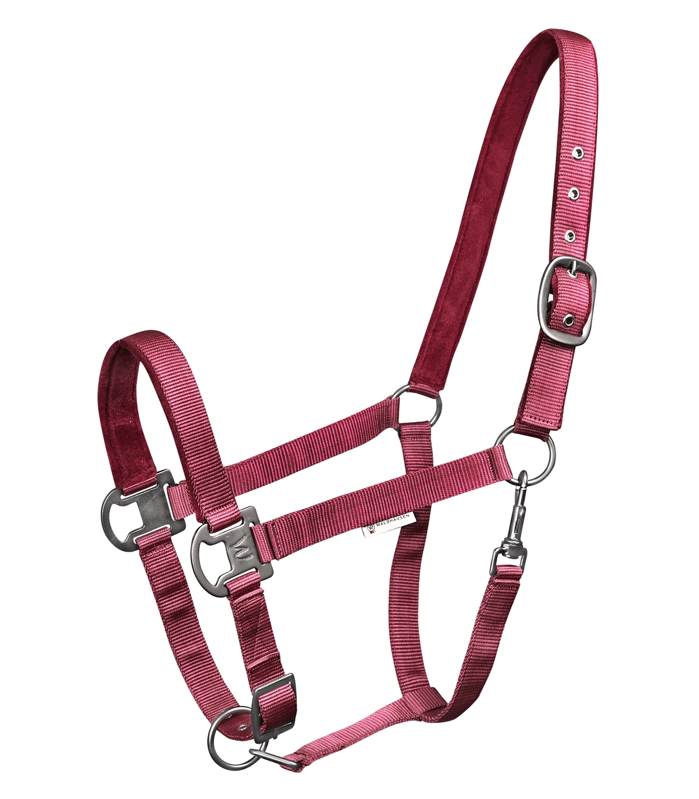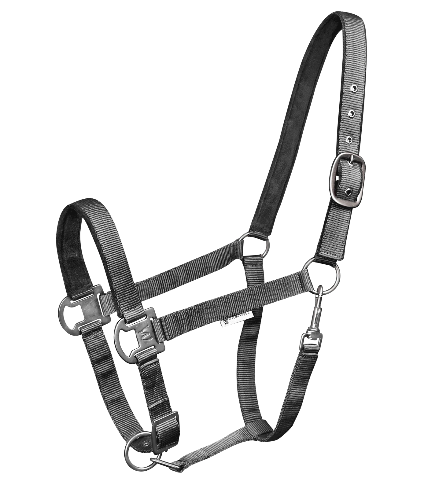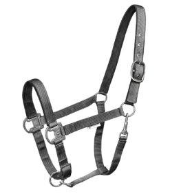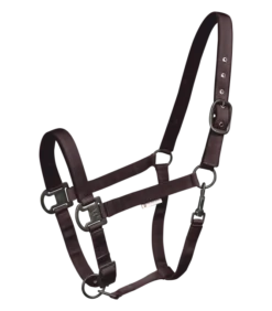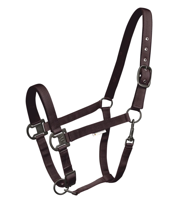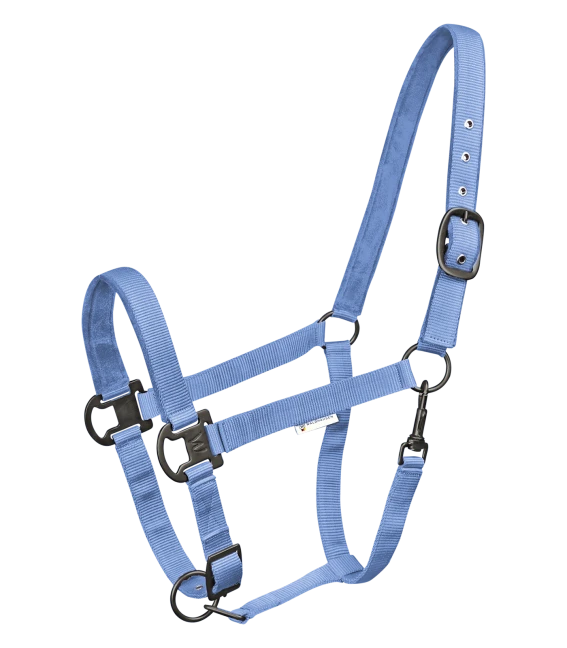 Softly underlaid halter, adjustable to several positions. With matt, dark fittings. Adjustable to several positions at the chin strap and headpiece (one side).