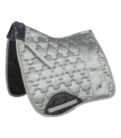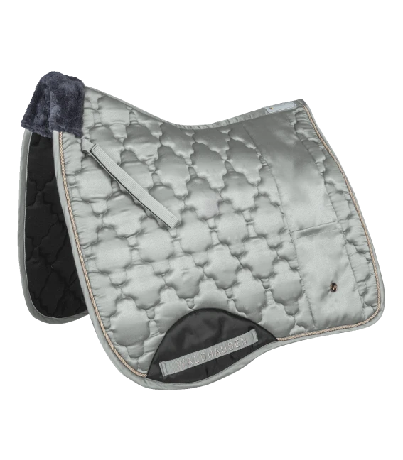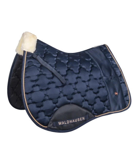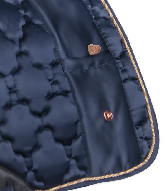 - Quality saddle pad with soft padding at withers as well as a small pocket for storing treats, tissues etc.. The floral quilting as well as a rose gold cord and a small rose gold metal plate make the saddle pad eyecatching.