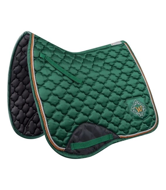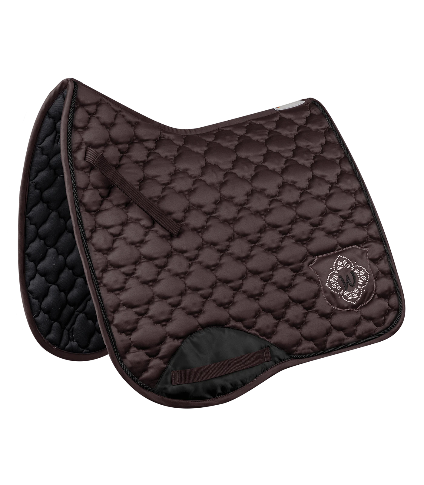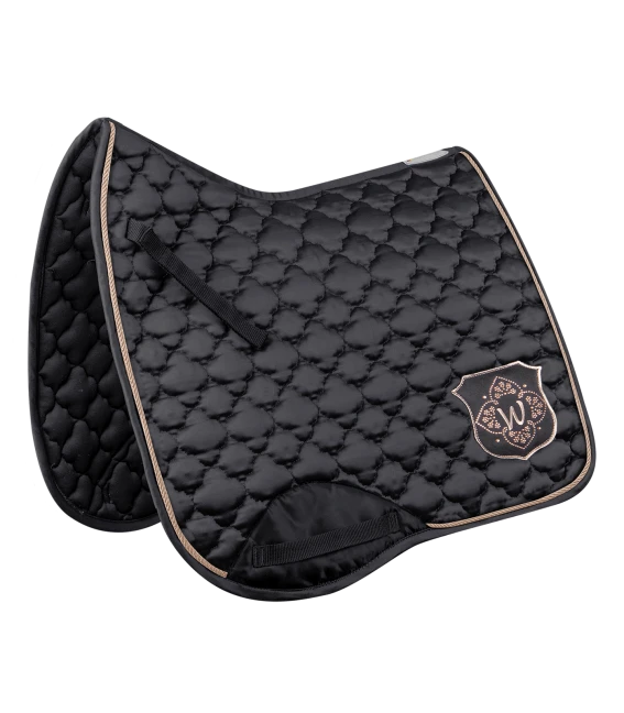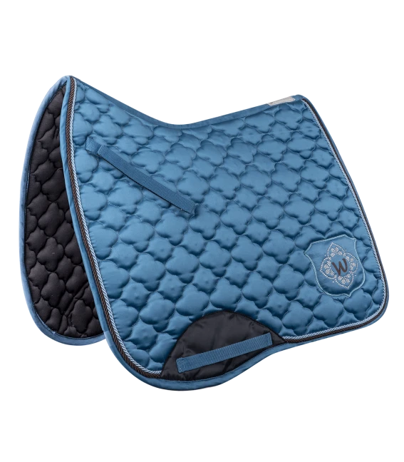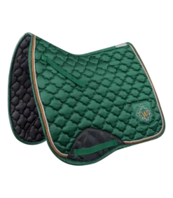 Anatomically shaped riding pad which provides a particularly good hold with its suede surface and its leather grap handle. The thick foam padding is stable under pressure and shock-absorbing whilst, at the same time, having an anti-slip effect. The soft cushioning and room for the withers makes the riding pad very comfortable for the horse”s back.Surface area covered: 58cm