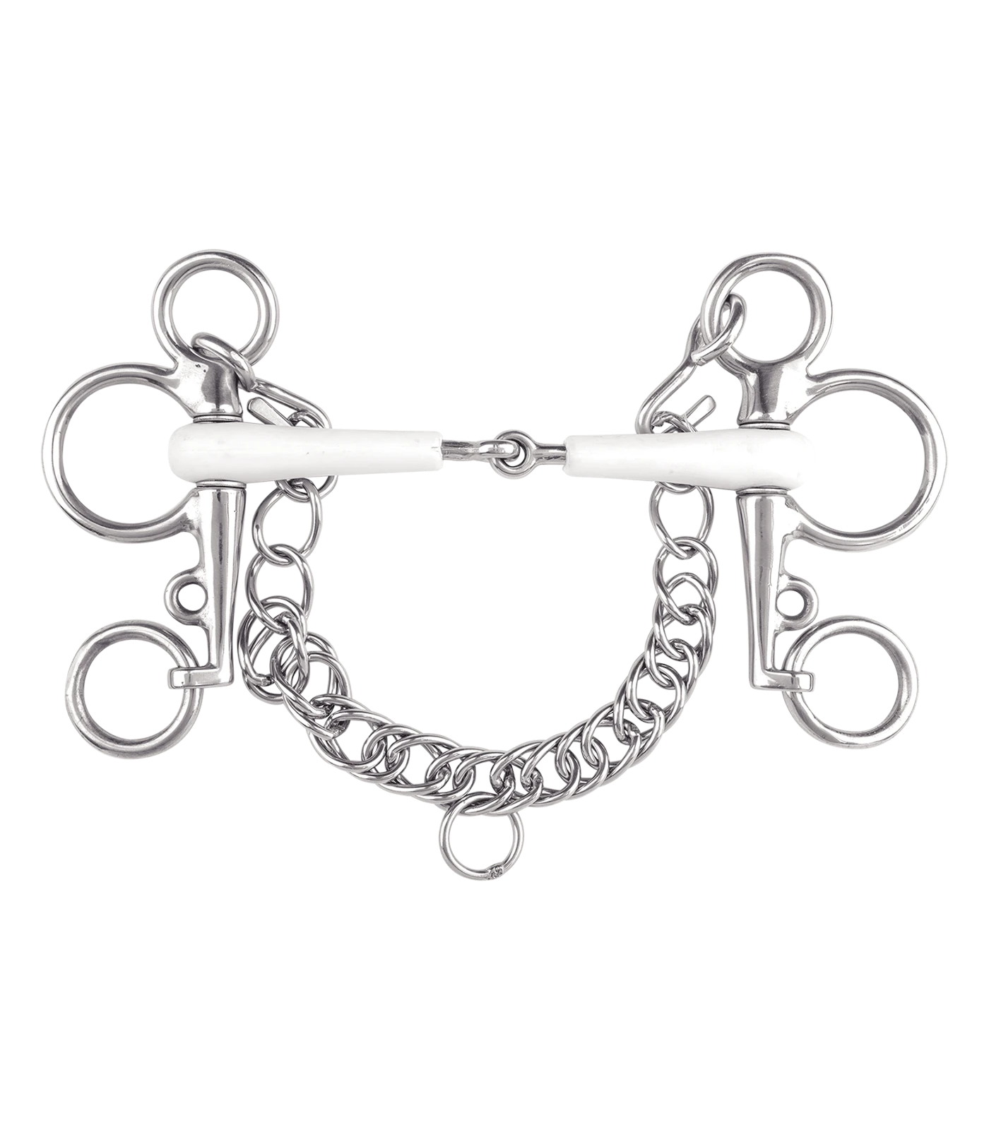 The high quality thermoplastic material is very well tolerated and stimulates chewing. Contact with the horse”s mouth is fine-tuned and thus promotes the horse”s contentment and readiness to perform. The rings are in stainless steel, likewise the internal steel cores in the bit. Make sure that the bit is in the correct position so that it cannot be damaged by biting.
