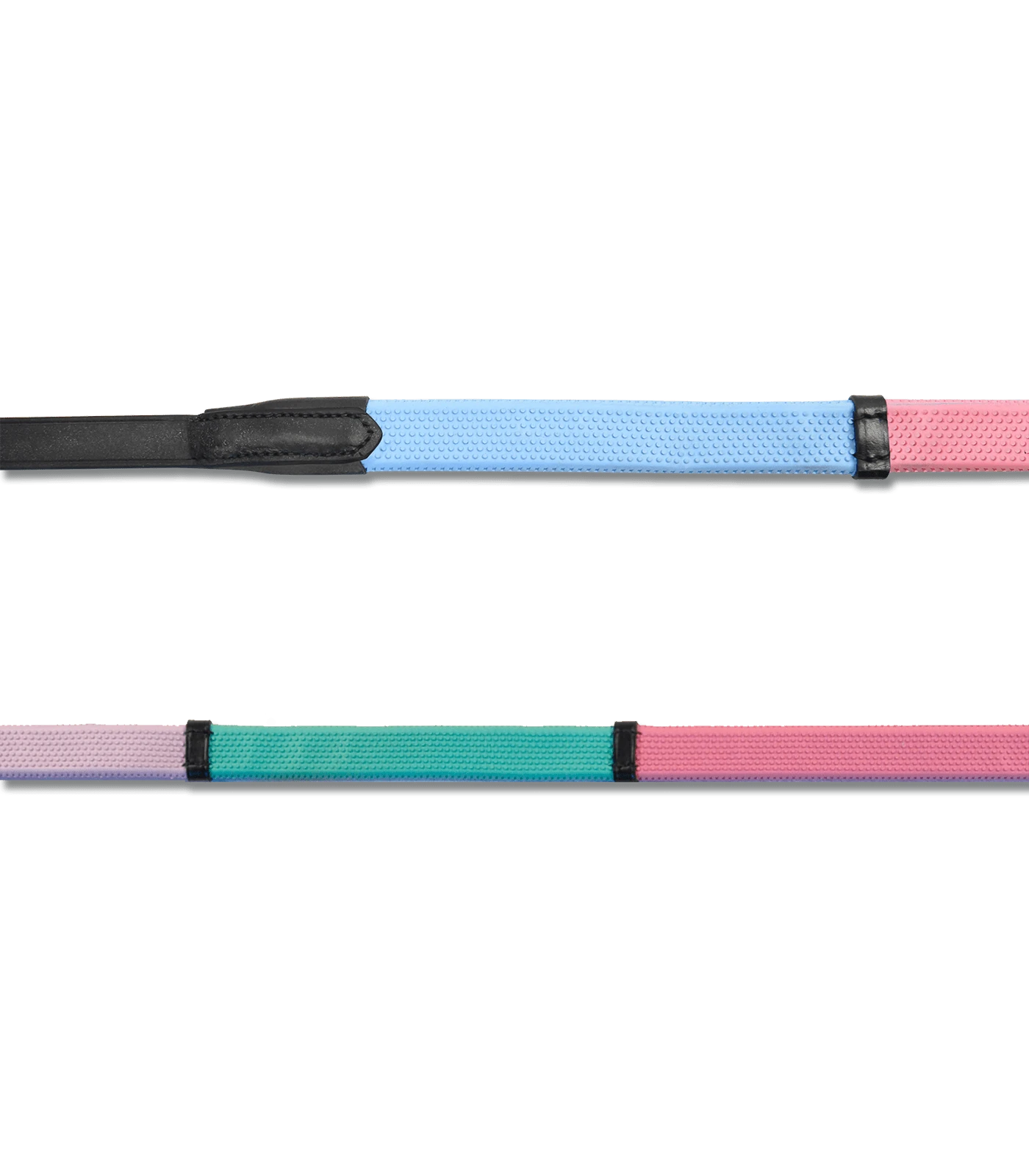 The reins sport 4 different Colours, with leather grips and martingale stops.