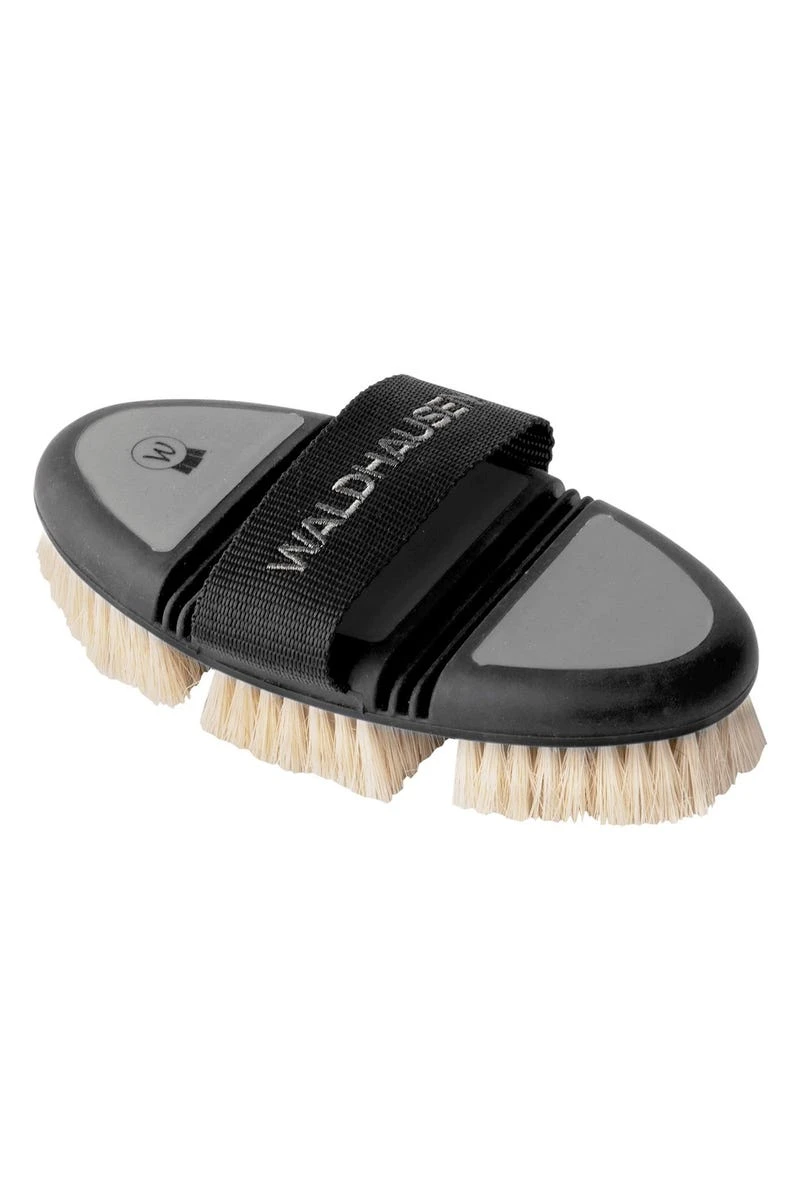 Durch die stabilen Naturborsten ist sie ideal zum Entfernen von festen Verschmutzungen wie Schlamm am ganzen Pferd geeignet.
