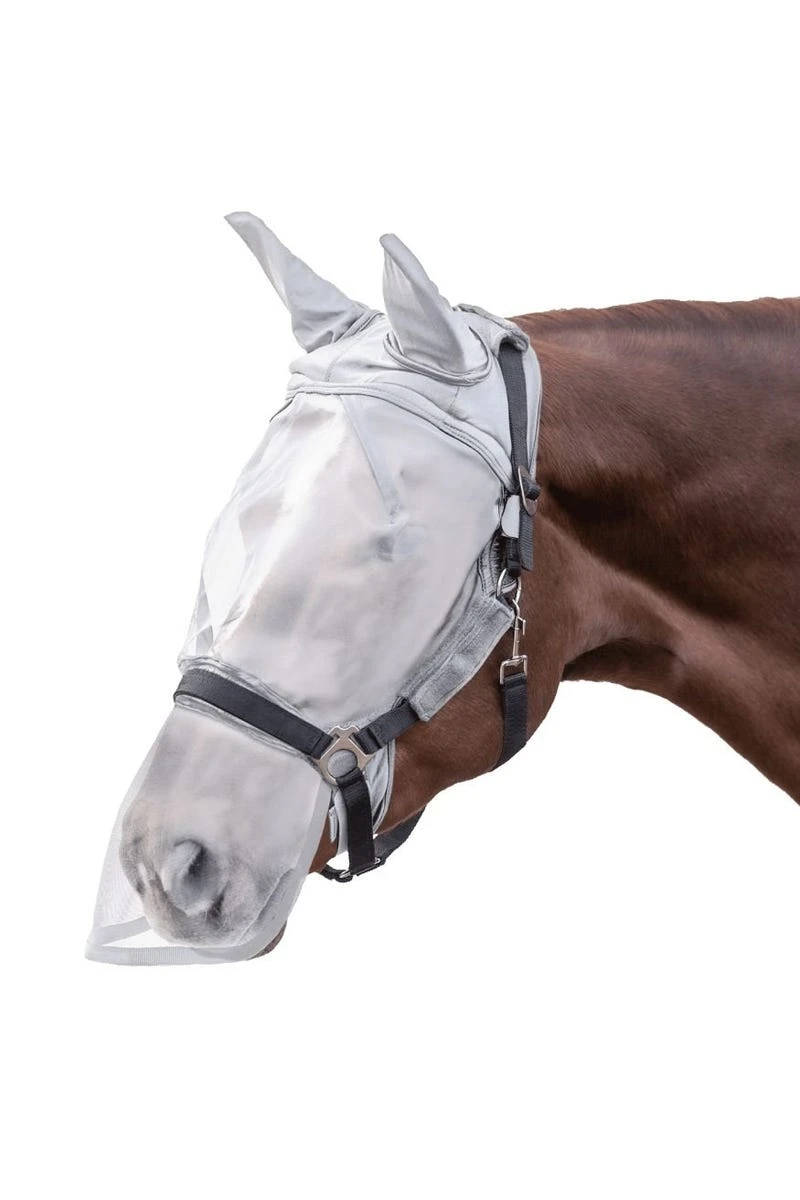 Die Fliegenmaske Premium mit Nasenschutz fĂŒr das Halfter von Waldhausen ist ein optimaler Schutz vor den lĂ€stigen Insekten fĂŒr Dein Pferd.Â