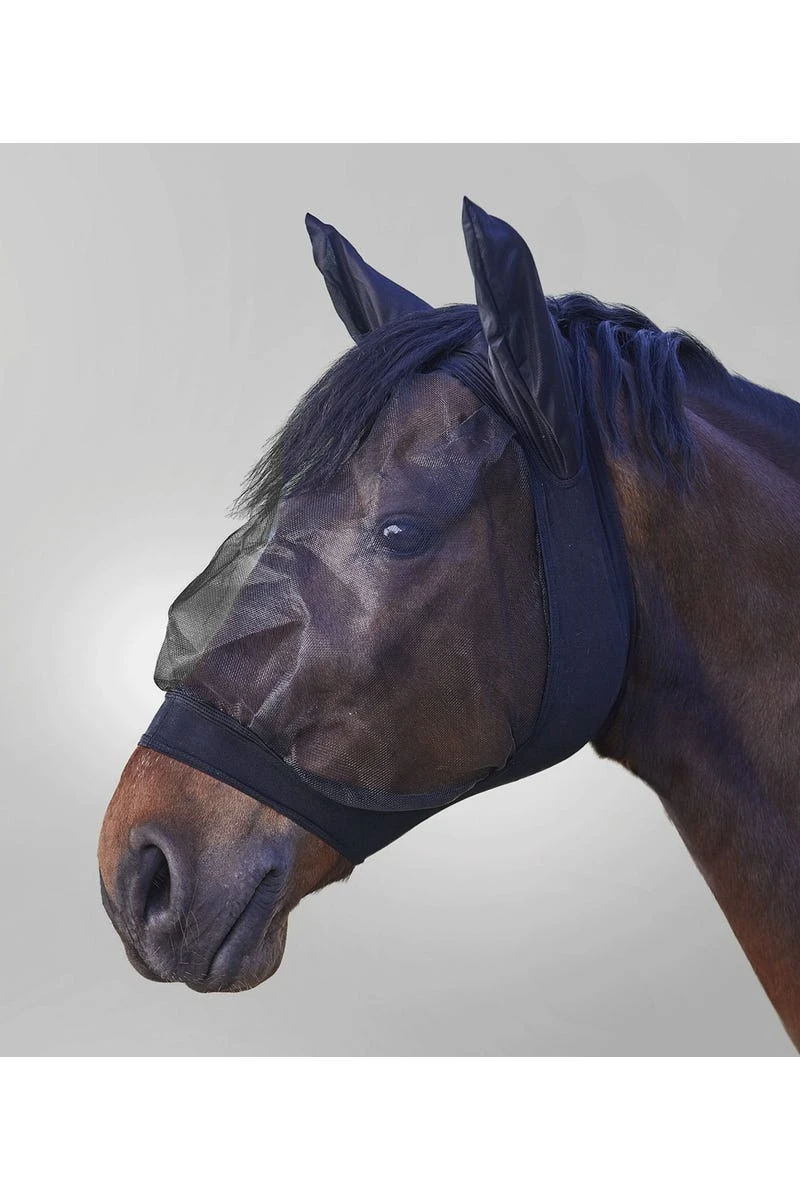 Das weiche Elastikmaterial umschließt sanft den Pferdekopf, sodas keine Insekten unter die Maske gelangen können.