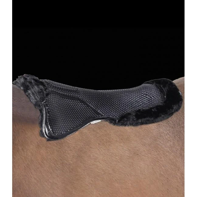 High quality gel pad with synthetic lambskin. Ensures a better grip, minimises pressure and thus relieves the horse”s back. With the synthetic lambskin on the underside as well as at the front and back. The ventilation holes in the gel part ensure optimum breathability.