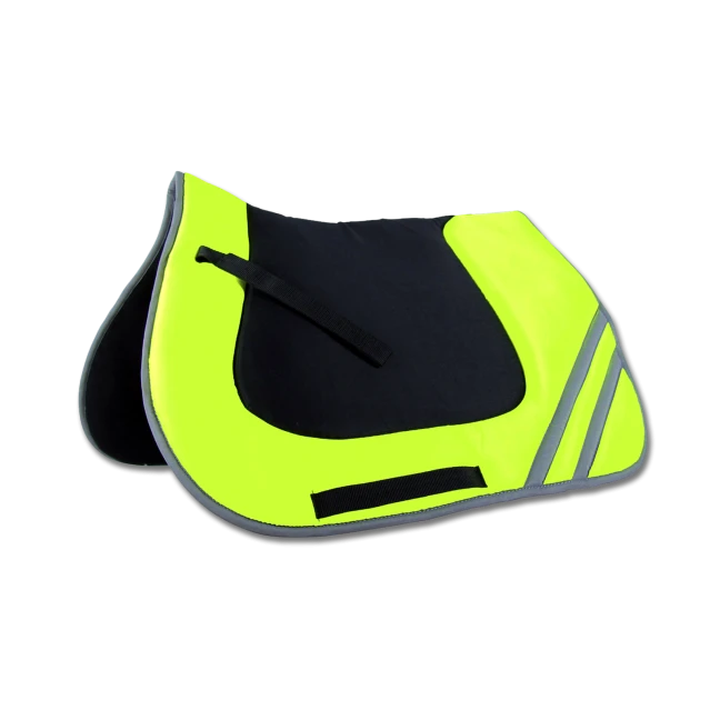 Waldhausen Hi-Viz Saddle Pad – Neon yellow outer material, softly padded with skin sensitive lining, provides added security for horse and rider. The saddle pad is finished with a reflective binding and two reflective stripes on both sides. Strap loops with touch tape.