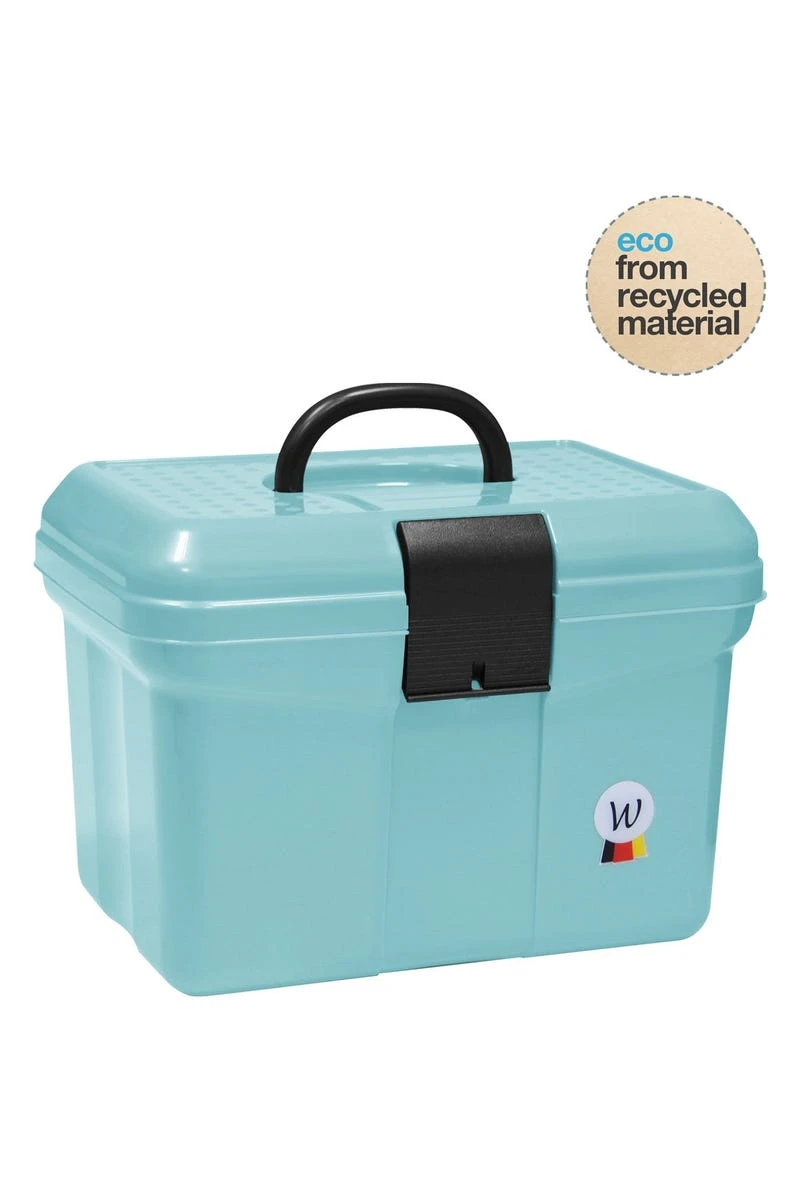 Die hochwertige Putzbox Eco von Waldhausen ist aus recyceltem Kunststoff hergestellt. Sie ist der optimale Begleiter im Stall sowie auf dem Turnier.
