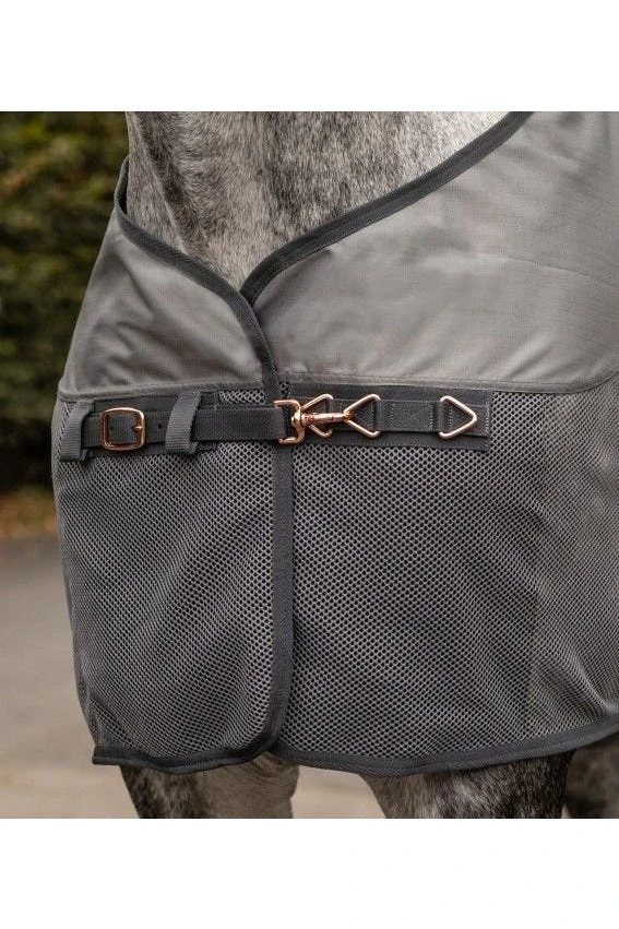 Das besonders luftdurchlässige Mesh-Gewebe am unteren Teil schützt Dein Pferd davor zu sehr aufzuheizen und hält gleichzeitig Plagegeister fern. Der obere Teil am Rücken besteht auf einem wasserabweisenden Material und hält den Rücken bei Regenschauern trocken. Ein Bauchlatz sorgt dafür dass auch der Bauch vor Fliegen geschützt ist.