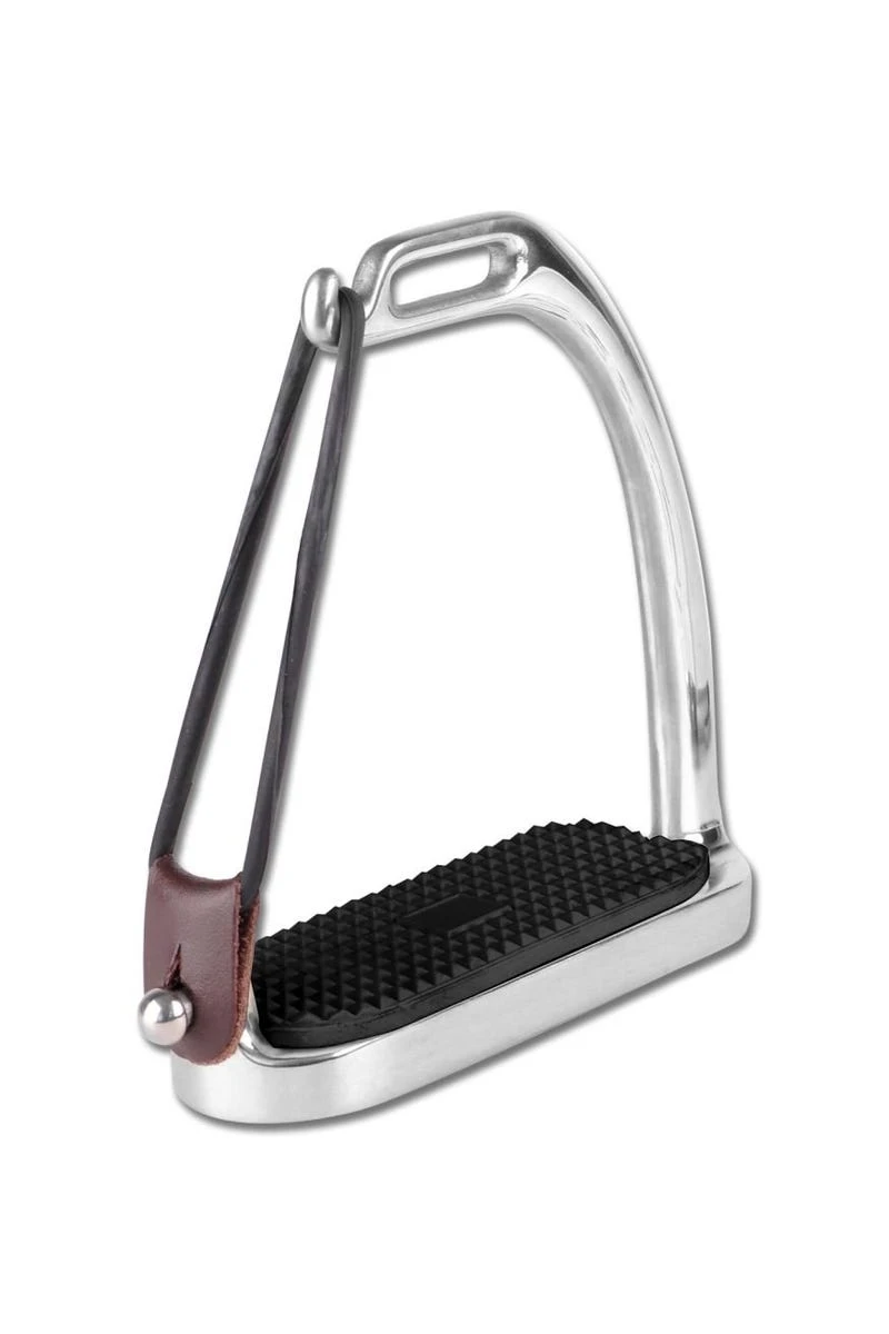 - Fillis Form mit seitlicher Lederschlaufe und Gummiring, damit der Fuß bei Gefahr leichter aus dem Bügel gleiten kann