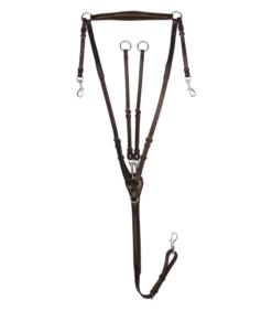 High quality breastplate worked in quality leather. With stainless steel buckles, elastic insert on neck part and removable martingale forks. With decorative seams on the bridge and breastpiece. This breast plate matches X-Line bridle Santander 95774.